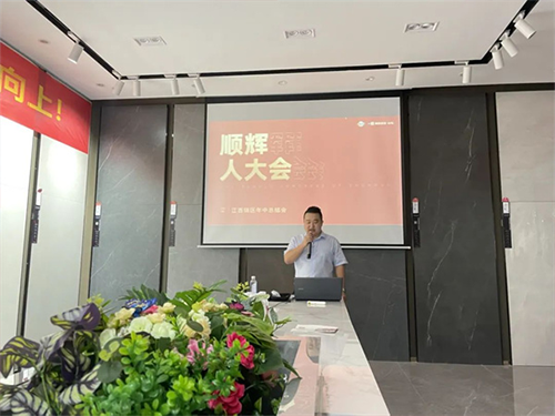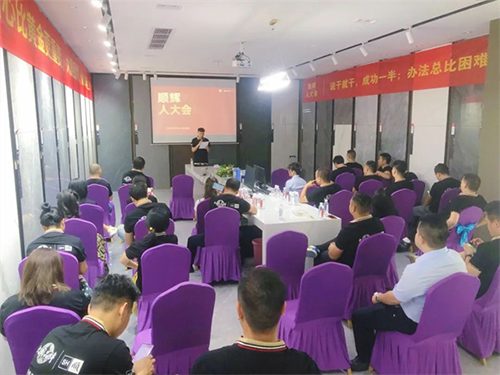 在今年市場環境嚴峻的狀況下,我們更要相信“信心比黃金重要”。會議伊始,順輝瓷磚?巖板贛北銷區總監唐家豪首先發表了講話,他表示雖現下市場環境嚴峻,但順輝憑借高端產品“大舍集思”進軍高端消費市場、推出順輝包鋪貼服務滿足客戶需求、重金打造順居方案庫提高終端成交率等系列舉措成功在市場上站穩了腳跟,成功為在座的服務商交了一顆定心丸。