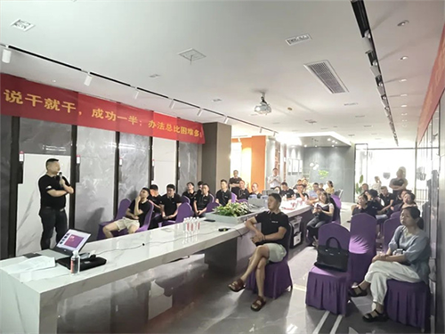 只有全方位、多渠道塑造塑造品牌向上的力量,才能在任何的市場困境中尋找到突破的風口。會上,順輝瓷磚?巖板贛中銷區總監汪安一分別圍繞上半年各銷區年度銷售任務完成情況、各類產品銷售占比情況、各銷區建店情況、順輝五好工程推進情況、共享倉推進情況等展開了詳細分析,指出了目前工作中存在的問題,并給出了具體的解決方案。同時針對順輝瓷磚?巖板下半年的業績提升、渠道開拓、產品打造、品牌傳播等工作進行了講解,為江西銷區的服務商們指明了工作方向。