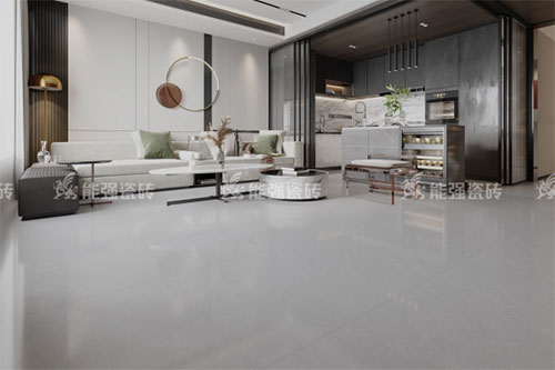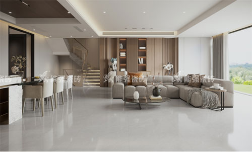 淺灰磚面上淡淡泛白的紋理隨意飄零,與淺灰的底色渾然一體,自然寫意,靈動灑脫,彰顯輕盈透潤的質感,讓質感空間更顯低調奢華。