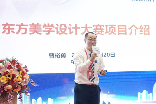 隨后,卡米亞瓷磚市場管理中心總監曹裕勇對“東方美學設計大賽”進行全方位解讀,公告了大賽賽程、大賽規則、大賽評委、大賽獎品等信息。