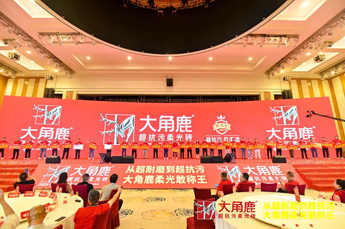 在現場的熱烈掌聲中,大角鹿超抗污柔光磚新品搶購通道火熱開啟。經銷商們爭先恐后下單訂購,搶占市場先機。多位核心區域頭部經銷商表示,大角鹿超抗污柔光磚的抗污效果在同類產品中遙遙領先,在終端市場引發了熱烈反響,新品試銷階段便供不應求,經銷商們都對大角鹿超抗污柔光磚的市場前景抱持著極高的信心。