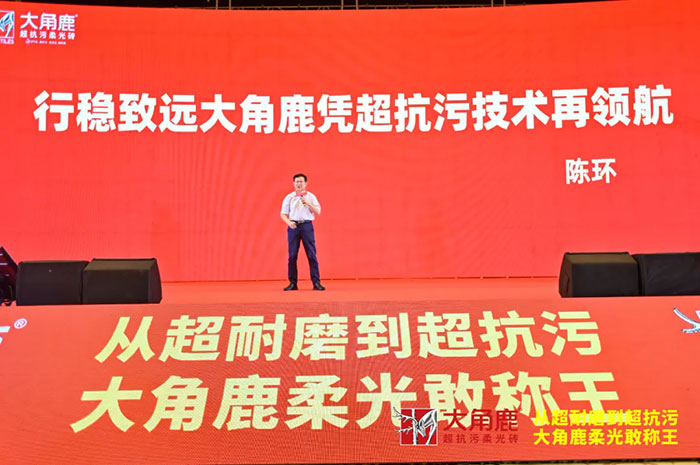 廣東陶瓷行業協會會長陳環對大角鹿的超抗污技術給予了高度評價,他認為,該技術的突破,將為大角鹿在瓷磚市場構筑更高的技術壁壘及更強的品牌勢能,成為推動陶瓷行業高質量發展的關鍵力量。