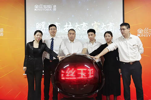 章氏企業董事長章云樹、章氏企業董事總經理章云黨、章氏企業副總經理兼金絲玉瑪品牌總經理楊威威、章氏企業董事長助理兼綜合管理部總經理張露、章氏企業董事長助理兼粵海區大商事業部總監侯陽陽、金絲玉瑪戰略合作部總監吳德楚共六位總部領導一起點亮2021金絲玉瑪大商項目啟動球!