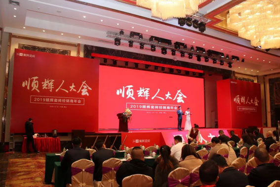 2019年12月12日,順輝人大會暨2019順輝瓷磚經銷商年會在華夏明珠大酒店盛大召開,順成集團董事長梁有福先生、順成集團總裁梁德云先生、順成集團董事長助理兼市場總監葛藤生、順輝瓷磚總經理彭長華等一眾領導及全國一千余名經銷商及意向客戶出席此次盛會。