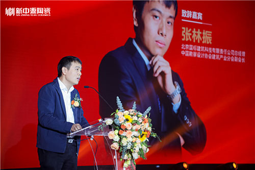 ▲新中源陶瓷/新中源住工營銷總經理張磊為晚宴致辭