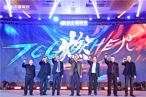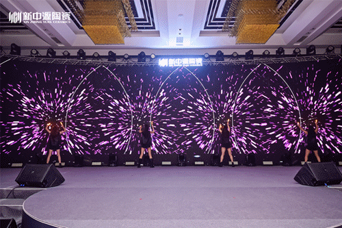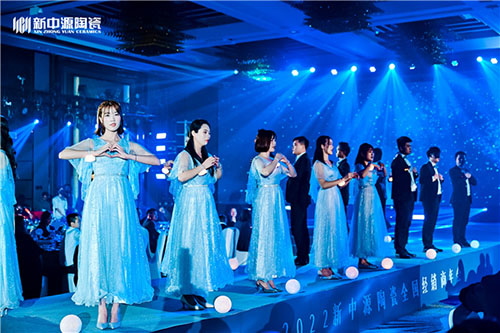晚上7:00,“燃·Together”2022新中源陶瓷全國經銷商答謝晚宴在佛山希爾頓酒店盛大舉行。