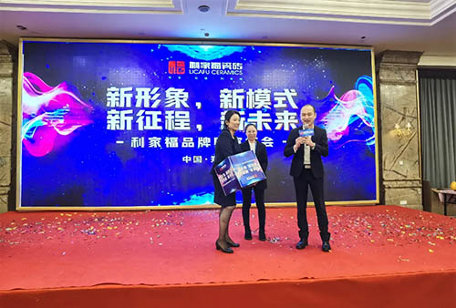 10月25日上午,宏美企業營銷總經理簡旭娟女士、事業部運營總監羅彩卿女士、財務部經理張娟女士、利家福品牌經理李國潮先生、何小峰先生、張煒林先生共同按下品牌升級的按鈕,揭開了利家福瓷磚“新形象?新模式?新征程?新起點”品牌財富峰會的面紗。這是一場面對后疫情時代、“兩荒一漲”—電荒、氣荒及原材料暴漲后,最具前瞻性的財富峰會暨新品發布會;利家福產品實現了多樣豐富,從規格、紋理、色彩、工藝、設計最大程度展現簡約、優雅、國潮風等人文氣息。
