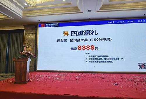 利家福品牌財務部經理張總深入淺出的對招商政策亮點和產品結構進行詳細解讀,利家福瓷磚憑借13年的行業經驗,并以市場需求為導向,以產品創新為核心,以品牌化服務為要旨,多維度、全方位為經銷商量身定制了諸多扶持政策,從而為銷售提供堅實的后盾!