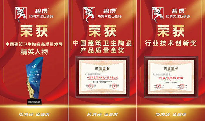 實力見證,榮譽加冕!2024中國建筑衛生陶瓷高質量發展大會在中國成都隆重召開,碧虎憑借卓越的產品實力、國際先進的超防滑核心技術和獨領風騷的個人影響力,連獲《中國建筑衛生陶瓷產品質量金獎》、《行業技術創新獎》、《精英人物》三重榮耀大獎!