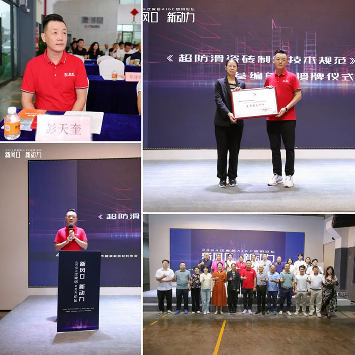 為了更好的做好防滑磚事業,碧虎創始人彭天奎常年活躍在一線,不厭其煩的推廣普及防滑安全的重要性!本次碧虎作為《超防滑瓷磚團體標準》首席起草單位,更是在評審會上大公無私分享生產流程、關鍵工藝、防滑性能指標。