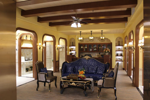 森尼陶瓷總部營銷中心IN一派現代館正式開放,設計以國際時尚為方向,一切回歸到產品的展現,打造以現代極簡風為主,體現現代舒適、綠色時尚的人居空間。大板開放式選材區,最大限度地展示產品一石多面的紋理特色,帶出強烈的流行前衛設計感。