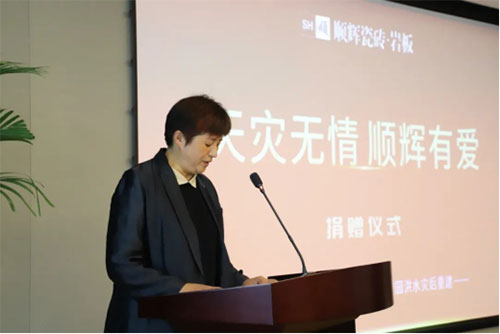 鄭東新區教文體局副局長王革非對順輝瓷磚表示衷心感謝,并將及時把愛心物資送到最需要的學校,為災后重建助力。