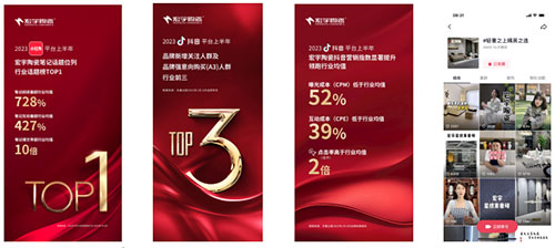 宏宇簡奢4.0展廳時尚的空間展示,吸引了一眾熱愛家裝生活的網紅達人相繼而至,更是自發向大眾粉絲種草推薦,以年輕的審美與消費理念傳達出宏宇展廳的高階美感與時尚設計。據了解,在抖音、小紅書平臺上的種草視頻與筆記被大量網民收藏、轉發,對于宏宇展廳、產品及空間場景的討論話題更是持續發酵,引發了圈層共振與傳播。截至目前,全國已有超百位達人到宏宇門店打卡,抖音和小紅書的短視頻及筆記內容曝光量已超1億+;2023小紅書上半年宏宇陶瓷筆記話題位列行業話題榜TOP1;2023抖音平臺上半年宏宇陶瓷品牌新增關注人群及品牌強意向購買(A3)人群前三。
