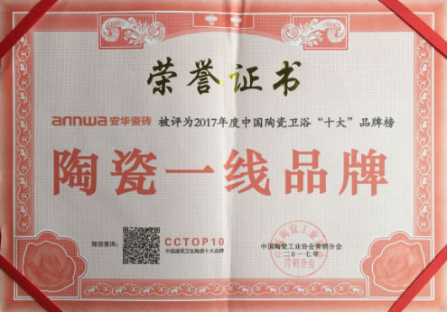 2017年4月2日下午,由陶瓷工業協會營銷分會主辦、陶瓷品牌網承辦的“陶瓷(衛浴)十大品牌頒獎盛典”在佛山中歐國際會議中心隆重舉行。本次的評選工作一直堅守客觀、公正、權威的評選準則,對數百個品牌進行嚴格評選。經過報名入圍、專家、行業協會推薦、網絡投票、評審委員評選、組委會評選等多重嚴格的評比后評選出最強的陶瓷企業榜單。安華瓷磚憑借創新的產品工藝、高品質的產品和強大的市場影響力榮膺“陶瓷一線品牌”大獎。