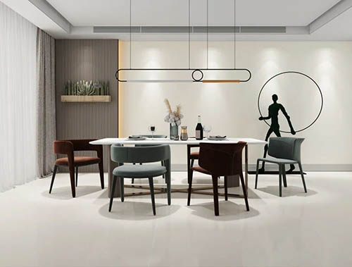 順輝瓷磚·巖板750x1500mm50°柔光磚,磚面光澤度保持在人體視覺最舒適的光澤度,同時接近天然石材表面質感,實現直入光的漫反射,有助營造自然、舒適的空間感覺。