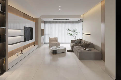 高壓力、快節奏生活給我們帶來疲憊。而家,就是舒緩身心的地方。順輝瓷磚·巖板750x1500mm柔光磚溫潤細膩,與棉麻布藝、原木色以及低飽和色系等家具搭配,給空間帶來更具溫潤、自然的氣息。