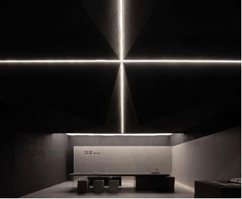 歐文萊品牌總部展廳的設計是基于品牌文化內核的一次深度思考,設計既要符合當代與探索未來的設計邏輯,同時要尊重品牌的文化與內核,深挖歐文萊尊重自然、強調素色美學以及純粹的品牌文化,通過建筑空間與光,用自信的態度來闡述歐文萊對產品的認知。