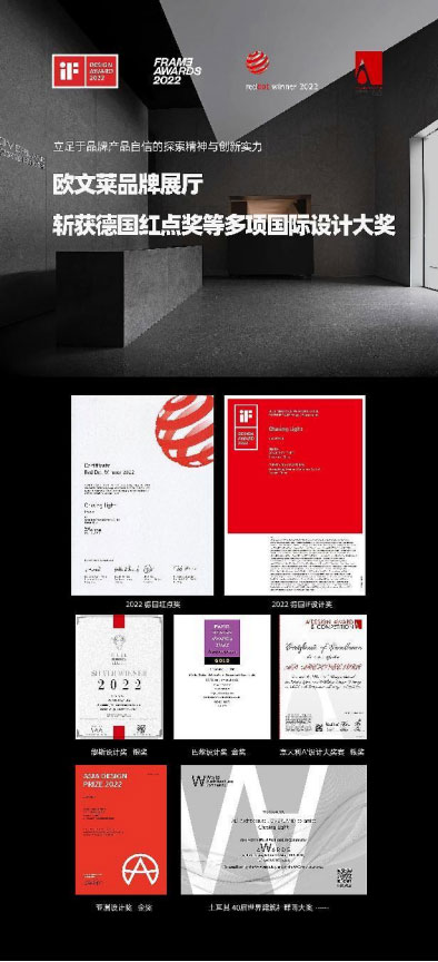 因嚴苛的評選標準,紅點獎被公認為國際性創意和設計的認可標志,是高品質設計的象征。該獎項的獲得不僅意味著歐文萊總部展廳的設計、品牌理念及產品應用獲得了權威的國際認可,也意味著歐文萊在國際化的道路上更進一步。