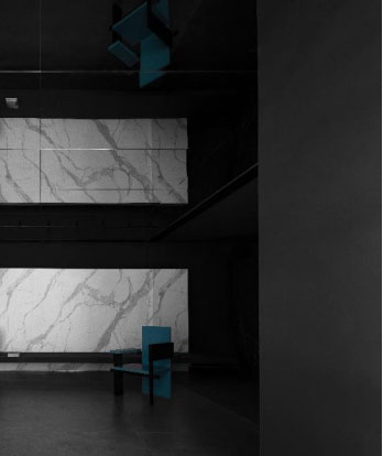 △ 人心與空間同振共鳴,即是遇見美好。幾何形體的空間形態與尺度,自然的巖板質感在光的作用下質感被表現到極致,人會被空間中靜謐的光、富有力量感的形態所吸引。