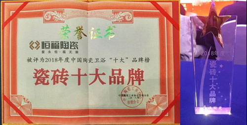 恒福陶瓷榮獲“瓷磚十大品牌”
