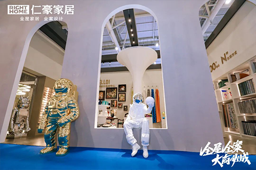 仁豪家居此次展館為圍繞用戶一站式全屋整裝美好家居生活應用場景,在展館布置上主要設有全屋全案整裝展示區、全屋智能體驗中心、軟裝設計選材中心、美食品鑒示范區、臥室/衣帽間精品展示及潮玩生活區等,將科技與時尚完美融合,為觀眾打造了全方位、沉浸式的參展體驗,現場互動頻頻。