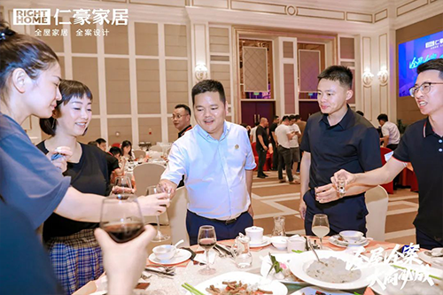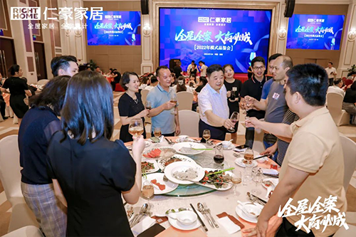 隨著白天品鑒會議的圓滿結束,晚宴在深圳龍崗中海凱驪酒店的一片歡聲笑語中正式拉開了帷幕。宴席中大家對仁豪家居全屋全案模式再次認可,并與董事長及公司高管深度交談,祝酒暢談未來。