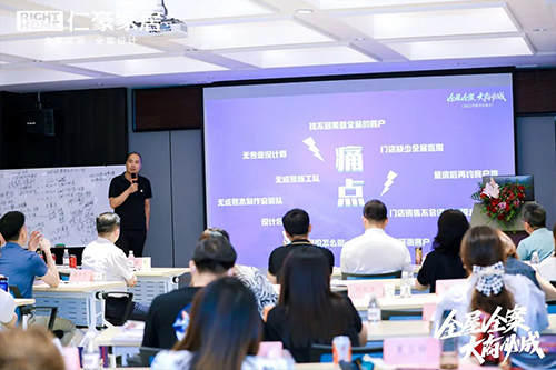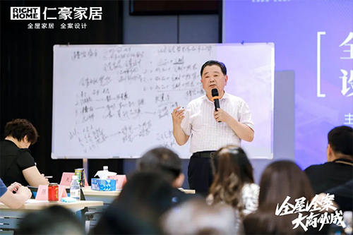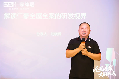 隨后仁豪家居研發中心總監劉曉輝先生為經銷商解讀仁豪“全屋全案”的研發視界。劉總指出,隨著家居消費者需求的提升以及集成化全屋整裝家居服務的發展,傳統單品類成品或者軟裝即將被淘汰,家居跨品類的融合,仁豪家居依托總部強大的品牌影響力、高效的供應鏈管理能力和研發優勢,解決全屋整裝亟待解決痛點,確保“全屋全案”戰略模式下店態順利運營!