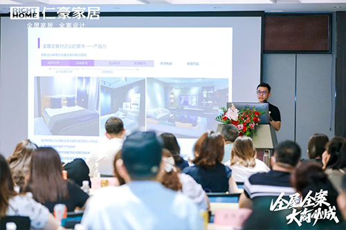 品鑒會圍繞“通過仁豪家居全屋全案模式創導,實現家居新賽道突圍”開展,從中國大家居制勝發展史、行業未來的形勢、抓住機遇,創新營銷逐步去深層剖析全屋整裝市場痛點。為經銷商伙伴們感知新市場,領略仁豪家居全屋全案模式創新帶來財富先機。
