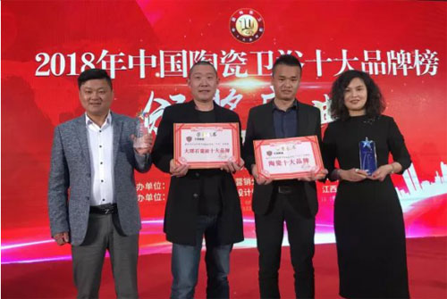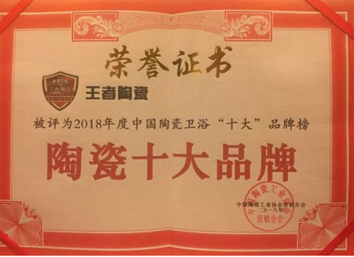 3月27日,在陶瓷工業協會營銷分會主辦,陶瓷品牌網、華南裝修大學共同承辦的2018年度陶瓷衛浴十大品牌榜頒獎盛典上,王者陶瓷憑借其在產品品質、品牌實力、品牌知名度、市場影響力等方面的綜合能力,獲得“陶瓷十大品牌”、“大理石瓷磚十大品牌”兩大殊榮。