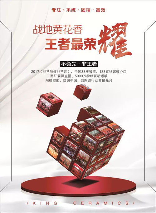 王者陶瓷用心做磚19年,秉承“好品質硬道理”的工匠精神,用自己的王者品質和服務獲取了億萬消費者的信賴和支持。王者陶瓷深知:不經歷艱苦磨難,就無法成為王者。正是在這樣的理念下,王者陶瓷才能在風云變幻的瓷海中,散發屬于王者獨特的萬丈光芒。