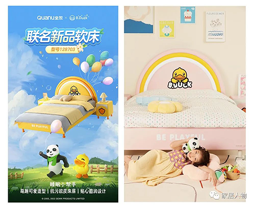《2017年-2022年中國兒童家具行業市場發展現狀及投資前景預測》報告表明,我國16歲以下青少年及兒童群體超過3億,占全國總人口數約四分之一,但是我國兒童家具在家具市場中所占的比重僅為5%左右,有品牌的兒童家具專業生產企業不到200家,充分說明兒童家具市場規模的巨大潛力和發展空間。 放眼未來,兒童家具已經從簡單的功能滿足轉變為承載更多的功能和精神需求,它是親子關系的紐帶,是孩子成長的重要伙伴,也是溫暖和趣味的樂園。以此次聯名為契機,全友將持續聚焦用戶需求,打造更符合用戶期望的家居產品、提供更個性化的家居解決方案,為兒童的健康快樂成長助力。 全友家居 X B.Duck小黃鴨聯名兒童家具系列新品現已在全友各平臺官方旗艦店全面上線,更多聯名新品即將推出. |