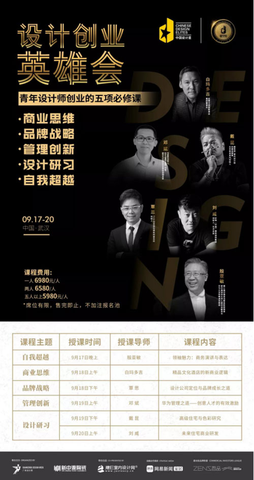 9月17日-9月20日星學院將在武漢重磅打造設計創業英雄會,首次針對設計創業人群,以認知、格局、能力、效益、素養五個基礎維度,取勢、明道、優術,結合核心課程研修+線上視聽研習+星導師實地游學+星競選現場觀摩,立體化構建青年設計師設計CEO的知識結構、能力體系、圈層資源。為青年設計師創業做必修課指導,助力每一位設計創業者成為時代的顛覆者。