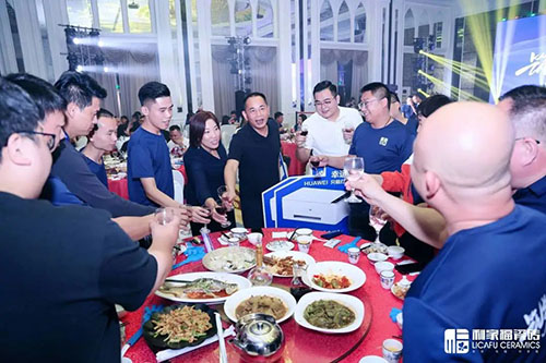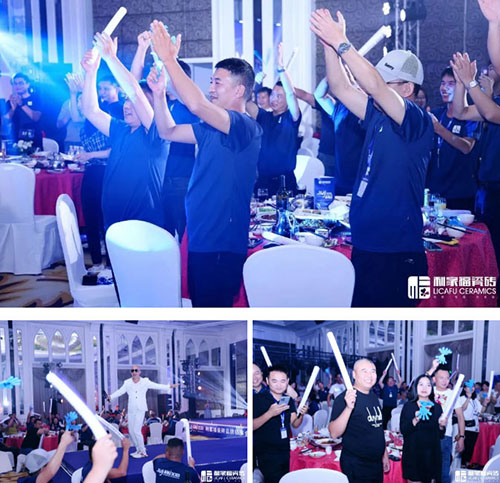 16日晚上,為感謝各位經銷商家人們的大力支持,利家福瓷磚準備了豐盛的晚宴和精彩的節目助陣。喝點小酒,舉杯暢談,現場充滿歡聲笑語。