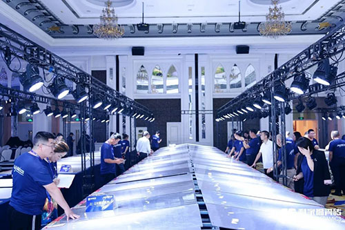 在新品發布前,模特攜新品走秀點燃現場,同時新品宣傳片在屏幕上播放,活動現場新品的超高顏值讓各位經銷商家人們目不轉睛,驚嘆不已。