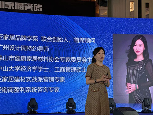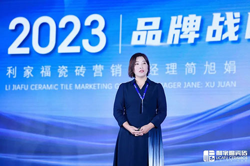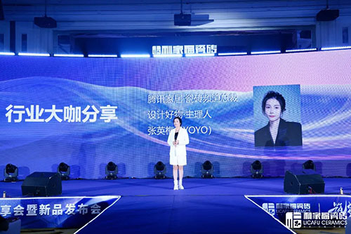 緊接著,由騰訊家居·瓷磚頻道總裁張英梅(YOYO)女士上臺分享,張女士充分肯定了利家福瓷磚對于“務實“的追求,特別是利家福瓷磚2023年”無懼切割“的品牌賣點,更是讓她贊不絕口。