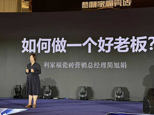 緊接著,由利家福瓷磚營銷總經理簡旭娟發表演講“如何做一個好老板”,針對目前市場動蕩下終端營銷的痛點分析,提出應對之策,獲得了在場經銷商家人們的稱贊。