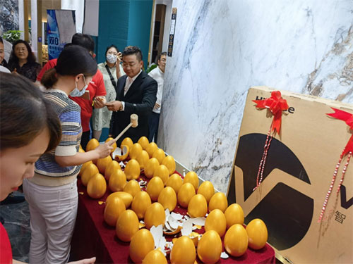 開業現場人頭攢動,賓客云集,處處洋溢著喜慶氣息。為了回饋廣大消費者的熱烈支持,利家居瓷磚特意推出砸金蛋贏好禮、福利產品讓利等方式,吸引了大批業主紛紛搶購下單。
