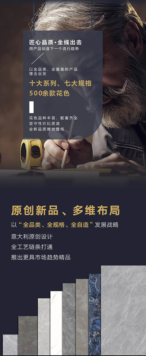 隨著時代快速發展,消費升級迭變,品牌的變革升級是順勢而為,2021年作為金禧萊陶瓷高速蛻變的戰略元年,不斷實現自我迭代與認知升級,以消費者需求為導向,價值與實用、實惠并重的高性價比品牌定位,做大眾消費得起的好瓷磚!