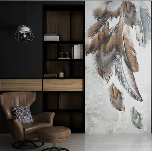 絮羽風輕FTB15023:絮羽風輕自帶浪漫氣息的羽毛元素,4面組合看起來就像一幅完整的畫作,把大自然的靈感搬回家,讓墻面呈現出獨一無二的美感。