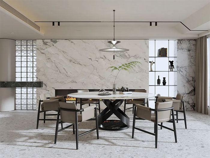 意大利施恩德巖板作為獨家進口巖板品牌,受邀參加本屆展會,遴選十余款2024年度大規格新品參展,在643平方米建筑“容器”中展示300x150cm等大規格巖板的墻地空間應用與巖板家具定制應用方案。這是該品牌自2021年起連續四年參加中國建博會,同時也是首次嘗試跨界聯展并獲得設計界的廣泛關注與好評。