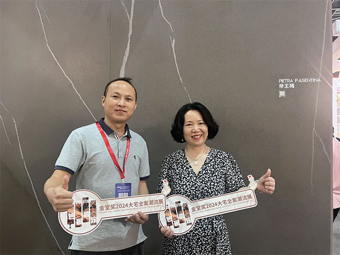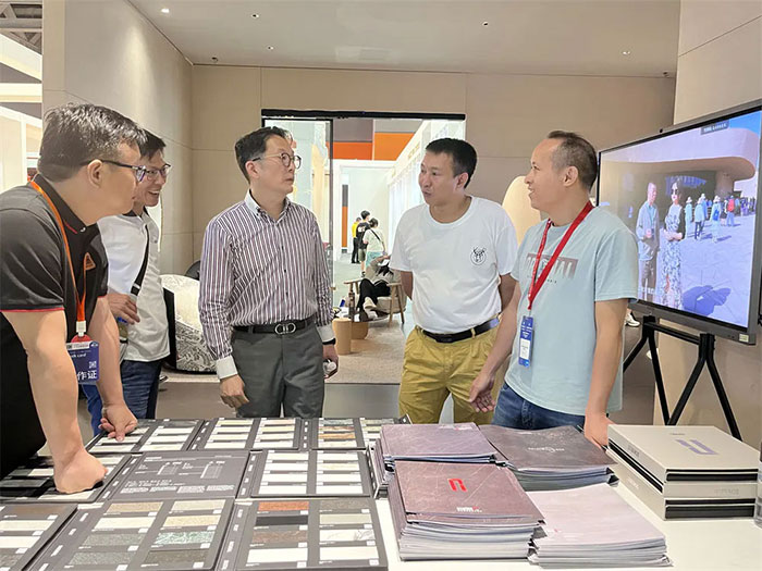 展會期間,臺灣室內設計裝飾協會理事長宋瀚霖、金堂獎全國秘書長黃艷紅和北京執委會秘書長衛東等領導考察意大利施恩德巖板展區。黃艷紅秘書長表示,金堂優選已為全國超1000+高端設計師提供深度軟裝全案服務,期待在未來的合作中繼續攜手意大利施恩德巖板拓展高端設計師渠道。