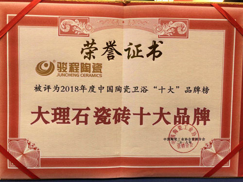 此外,駿程陶瓷自推出大理石瓷磚以來,一直受到消費者的高度關注,并且銷量一直創新高。在這樣的優勢下,也讓駿程陶瓷斬獲了“大理石瓷磚十大品牌”稱號。
