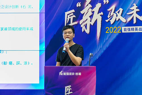 產品的迭代升級是引領行業發展的革新,更是一家企業不斷突破的步伐。2022年,能強新品層出不窮,能強集團產品研發部蔣總就新品素巖·素絨、素巖·法蘭絨和素巖系列以及新品臻品隕石系列做詳細解析,現場為能強家人們夯實基礎,錘煉內功。