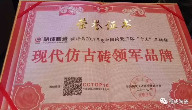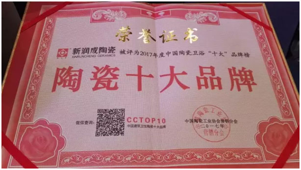 近年來,新潤成陶瓷先后榮獲“全國陶瓷產業知名品牌創建示范區”骨干企業、“廣東省企業500強”、“廣東省民營企業100強”、“廣東省制造業100強“、“500最具價值品牌”、“陶瓷十大品牌”、“全國建陶品牌20強”、“高新技術企業”、“陶瓷優質產品認證”、“廣東省名牌產品”、“廣東省著名商標”、“廣東省清潔生產企業”、“3C認證”、“連續五年守合同重信用企業”、“A級守信企業”等眾多榮譽稱號。本次“2017年度建筑衛生陶瓷十大品牌榜”的評選中再度榮獲“陶瓷十大品牌”正是建筑衛生陶瓷行業以及廣大經銷商、消費者對新潤成陶瓷的支持與肯定!