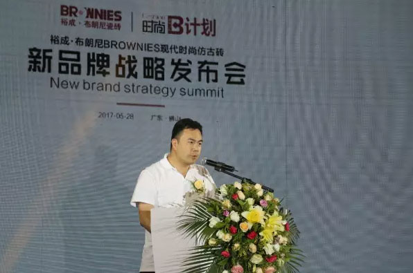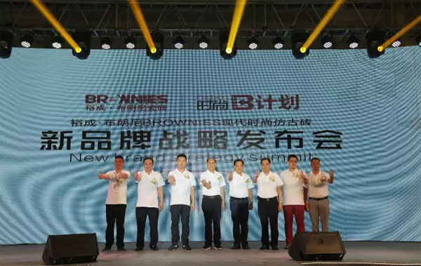 5月28日下午,2017“時尚·b計劃”裕成·布朗尼瓷磚新品牌戰略發布會在佛山國藝度假酒店正式啟動。新潤成集團董事長關潤啟、新潤成集團董事關潤開、新潤成集團董事兼總裁關潤淡、新潤成集團董事,廣東新潤成陶瓷有限公司總經理關偉洪、裕成?布朗尼瓷磚品牌經理余偉文等領導以及來自全國各地的經銷商一同參與了盛會。