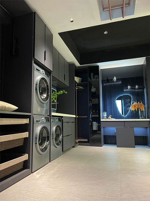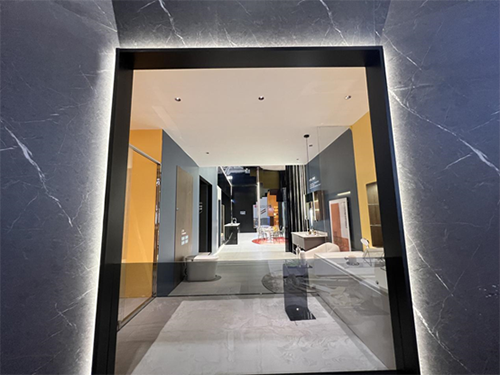 展臺內部,本次參展的C位空間是惠達衛浴的明星產品——智能坐便器展示空間,該空間以高端時尚與智能科技為主,伴隨著燈光效果的營造,給用戶提供一種整體空間的時空感。馬桶、浴缸、淋浴器、BOBO巖板、瓷磚、裝配式整體浴室、陽臺空間解決方案等,則匯聚在各種模數化空間,展現了跳躍思維與時尚產品的完美搭配,營造出了快節奏時代下的慢生活體驗,讓現場觀眾直呼過癮。