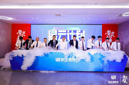 新中源陶瓷/新中源住工總經理黎德勇、新中源陶瓷/新中源住工營銷總經理張磊、優居橙心互動全國營銷總經理劉銘、新中源陶瓷市場管理中心總經理袁高生,以及新中源陶瓷大區/事業部總經理等領導,主持了“星云計劃”發布儀式。