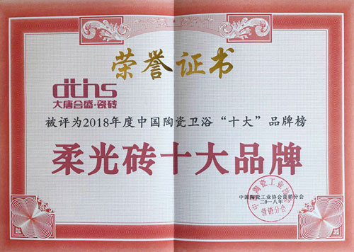 3月27日,由陶瓷工業協會營銷分會主辦,陶瓷品牌網、華南家居網聯合承辦的2018年度陶瓷衛浴十大品牌頒獎盛典于杭州國際博覽中心隆重舉行。盛典上,大唐合盛瓷磚雙喜臨門,一舉攬下2018年度陶瓷衛浴十大品牌榜的“陶瓷十大品牌”、“柔光磚十大品牌”兩項殊榮。