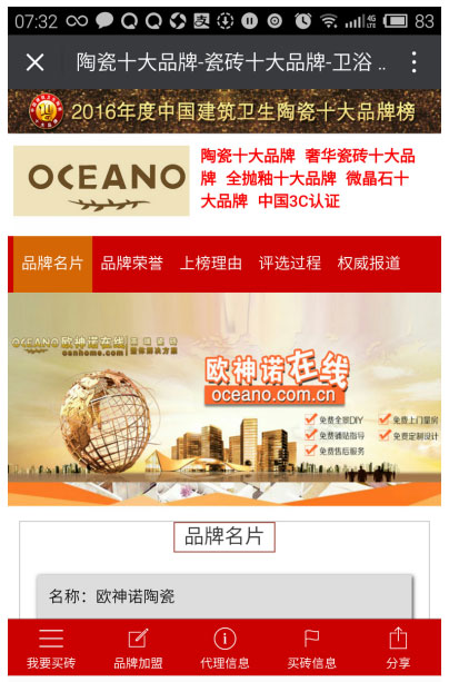 據統計,我國微信用戶總數已突破8.5億戶!此次活動特開通微信服務號“建筑衛生陶瓷十大品牌”,方便客戶微信端查詢;