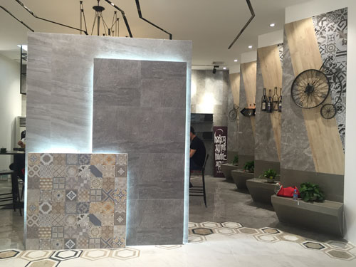 啟動儀式過后,為了讓在座對摩卡館有深入了解,珈納陶瓷設計總監對產品進行了詳盡解讀。在緩緩的輕音樂中摩卡現代仿古磚一一揭幕,珈納陶瓷的設計總監從每款產品的創意來源出發,對產品蘊藏的深層次文化、設計理念和研發工藝等進行深度挖掘和描述。整個摩卡館將原始的質感、懷舊的氣息、神秘的空間感和時尚風潮表現得淋漓盡致,在閃耀的聚光燈下,摩卡館凝聚著全場的贊美與驚嘆!